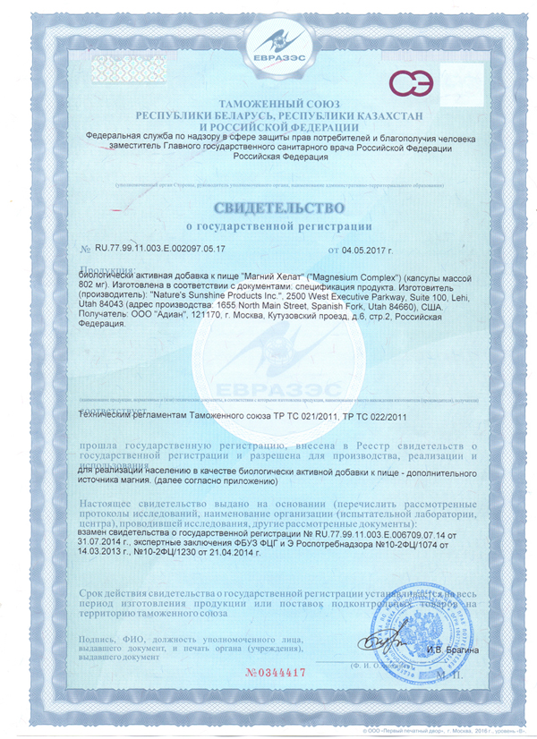 Магний (макроэлемент) – один из наиболее важных биоэлементов, который участвует в работе более чем 300 ферментов. Магний – важнейший электролит, участвует в выработке АТФ, необходим для всех энергопотребляющих реакций в организме. Магний важен для поддержки развития плода у беременных, работы сердца, сосудов, центральной нервной системы, толстого кишечника, почек, участвует в формировании соединительной ткани. О дефиците магния свидетельствуют нарушения сна, повышенная утомляемость и раздражительность, необъяснимая тревога, спазмы икроножных мышц. В более тяжёлых случаях отмечают нарушение сердечного ритма, запоры, развитие предменструального синдрома. Потребность в магнии увеличивается при инфекциях, полиурии, употреблении алкоголя, слабительных и мочегонных, при остеопорозе, дисплазии соединительной ткани, сахарном диабете 2-го типа, артериальной гипертонии, мочекаменной болезни, бронхиальной астме, синдроме гиперактивности у детей, при больших психических (в том числе при стрессах) и физических нагрузках (в первую очередь у спортсменов). В таких случаях обычное питание не может обеспечить физиологическую потребность в магнии, и его необходимо принимать дополнительно.